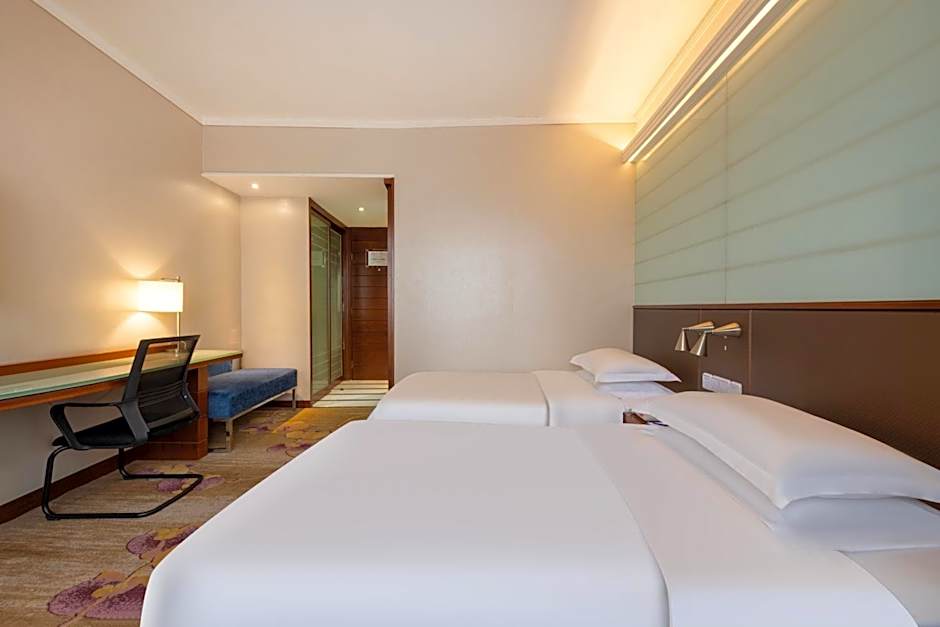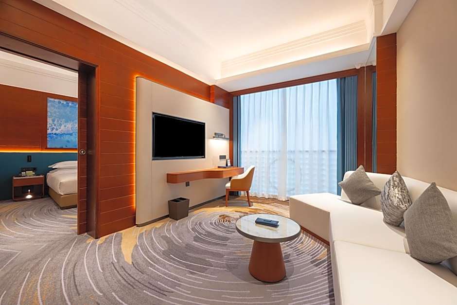 Overlooking the beautiful city, the 68-square-yard suite offers ocean-theme decor along with a separate living area with a comfortable sofa set, a 42-inch flat-screen TV and a computer. It is located on the floors 8-21. The large private bathroom includes a hairdryer, bathrobes and rainshowers. Free Wi-Fi and free domestic calls are provided.