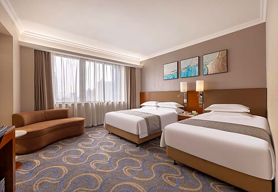Providing free toiletries and bathrobes, this twin room includes a private bathroom with a shower, a hairdryer and slippers. The air-conditioned twin room provides a flat-screen TV with cable channels, soundproof walls, a mini-bar, a wardrobe as well as city views. The unit offers 2 beds.